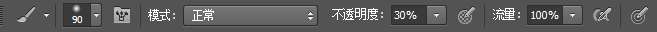 选择工具箱中的画笔工具,此时工具选项栏将切换到画笔工具的选项,如下图所示。