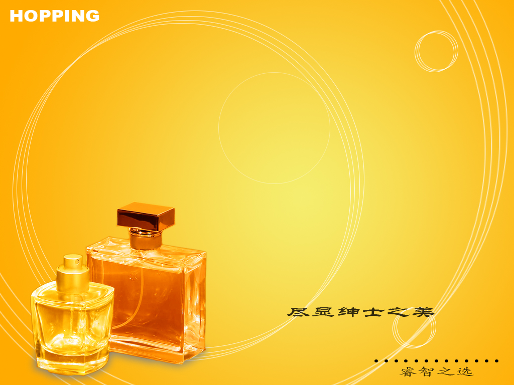 在设计广告招贴时,为了突出产品主题,往往需要制作简单的背景。这里使用径向渐变搭配错位的圆形线条作为产品香水的背景,使背景与方形和菱形的香水瓶综合在一起,突出了主题。