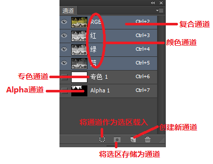 “窗口”-“通道”命令,如果当前文件是RGB模式,那么在通道面板中最先列出的是复合通道,其次是单色通道。