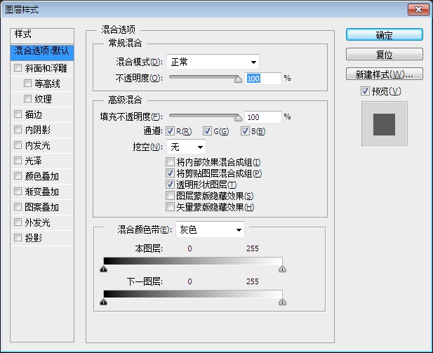 高光或阴影模式:指定斜面或浮雕高光,或阴影的混合模式。