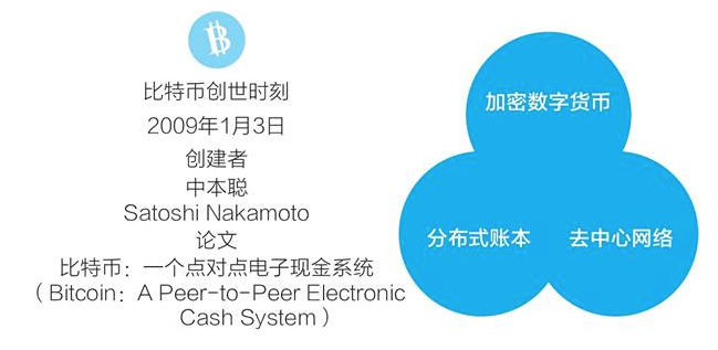 在比特币的创世时刻,它的三个组成部分都出现了,即加密数字货币(cryptocurrency)、分布式账本(distributed ledger)、去中心网络(decentralized network)。