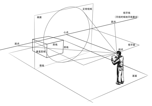 课后作业:复习透视系统中的各个术语名称及概念,尝试默画透视系统,并标注各部分名称。