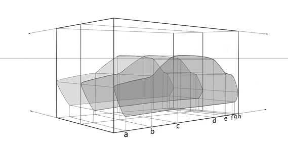 1.平行曲线:所谓平行曲线,从视觉上看就是走势和形状完全相同的两条或多条曲线,通常情况下我们将曲线所在的方形按相应的透视画法画好,然后在方形内找曲线的关键点,最后连接关键就形成了一条曲线,另外一条平行的曲线通过从已有关键点引导线的形式,找到另外对应的曲线上的关键点,同样连接这些关键点,得到另外一条与之相平行的曲线,如下图所示。