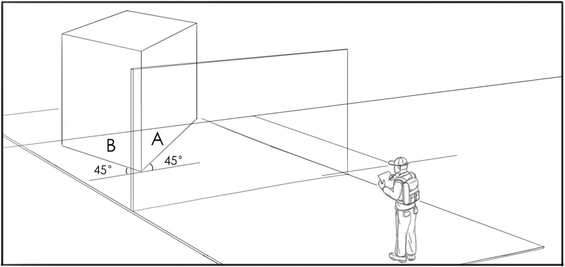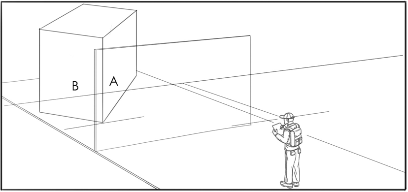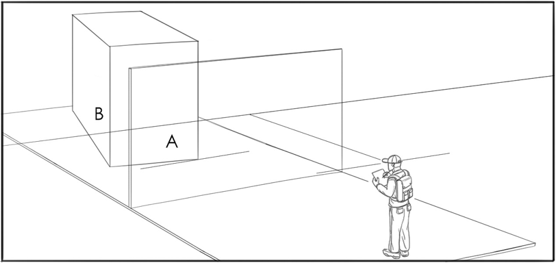我们知道,余角透视可以理解成平行透视长方体旋转180度过程中在画面中形成的透视状态,那么根据旋转角度的不同,长方体与画面的夹角的变化程度也不相同,我们根据两个夹角a和b的对比程度,将余角透视分为微动状态,对等状态和一般状态三种具有代表性的余角位置状态。当平行透视长方体在刚刚启动旋转以及快结束旋转将要达到180度的时候,我们成为微动状态。这种状态下,与画面成角的两个面有一个面的透视变化很缓和,形态受到透视压缩的程度很小,余点在取景框外很远的地方,接近无限远。另一个面由平行透视中的竖直线演变而来,透视变化剧烈,发生了很大程度的透视压缩,余点在取景框以内,离心点很近。