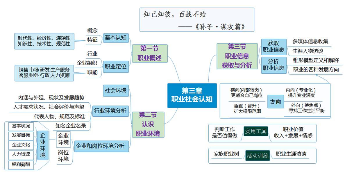 1.知识目标:学会职业认知的方法,清楚大学生了解职业信息的主要渠道,了解自己感兴趣的职业对从业者的入职及发展要求。