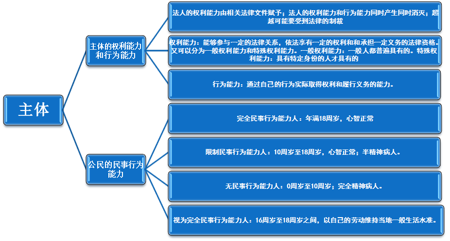 1.概念:法律关系是法律规范规定的调整一定社会关系过程中形成的人们之间的权利义务关系。法律关系一般由主体、客体和内容三个部分构成,缺一不可。