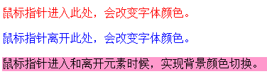 <p id="p3">鼠标指针进入和离开元素时候,实现背景颜色切换。</p>