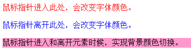 <p id="p3">鼠标指针进入和离开元素时候,实现背景颜色切换。</p>