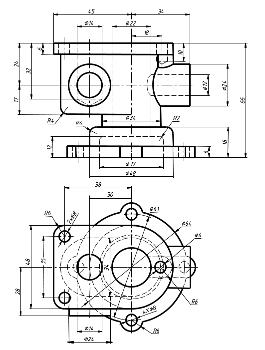 分析下图,构思机件的形状结构,重新选用恰当的表达方法,按1: 1 将下图所示机件画在A3 图纸上。