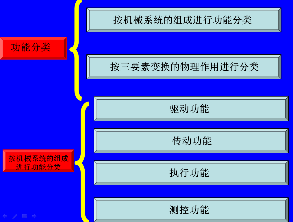 传递驱动和执行部分之间的运动和动力,包括运动形式、方向、大小、性质的变化。它的功能载体可以是机械式、液压式或电磁式等。