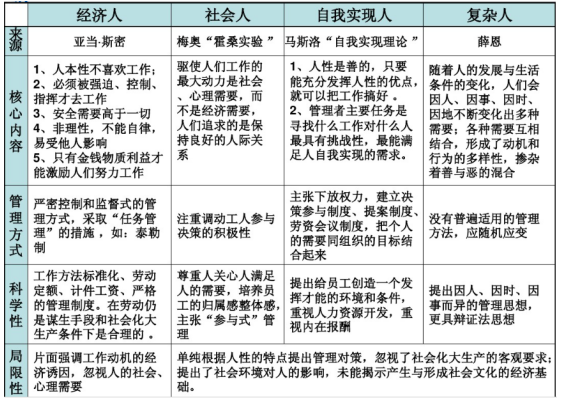 四种人性假设比较