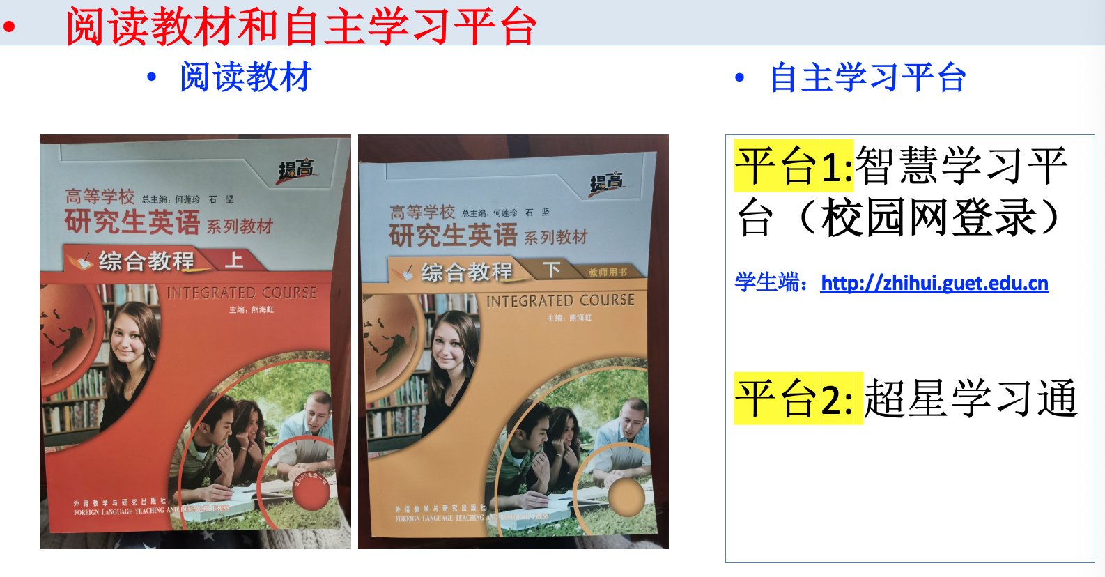 上册要求学生全部看,包括课文、课后阅读理解、词汇语法和翻译专题;下册只要求看课文后面的翻译专题。另外再提供更多的阅读理解,这些内容都通过教案和测试的形式发布到智慧平台上。