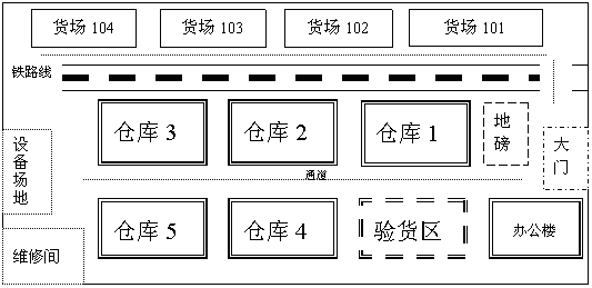 集装箱是堆存和保管集装箱的场所。根据集装箱堆存量的大小,货场可分为混合型和专用型两种。专用型货场是根据集装箱货运站的生产工艺分别设置重箱货场、空箱货场、维修与修竣箱货场。设置货场时应满足发送箱、到达箱、中转箱、周转箱和维修箱等的生产工艺操作和不同的功能要求,并尽可能缩短运送距离,避免交叉作业,便于准确、便捷地取放所需集装箱,利于管理。