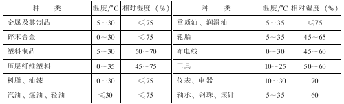 表5-1 几种货物的相对湿度要求