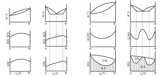 图3-8 合金的物理及力学性能与相图的关系 图3-9 合金的铸造性能与相图的关系
