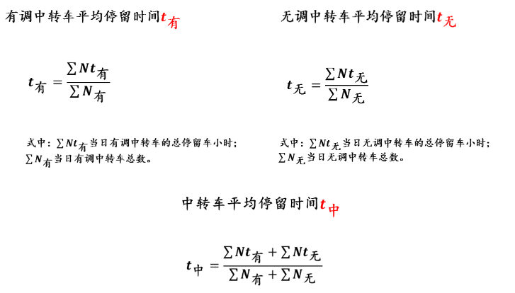 中转车平均停留时间为无调中转车平均停留时间和有调中转车平均停留时间的加权平均值。