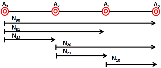 上图中,A2,A3,A4站的编组方案数为: