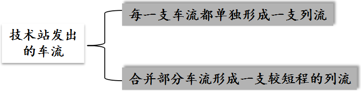 ¤同一技术站发出的车流相互组合形成该技术站的编组方案;
