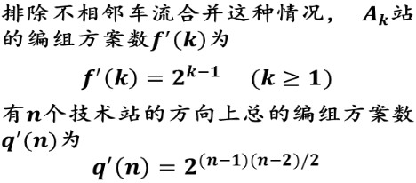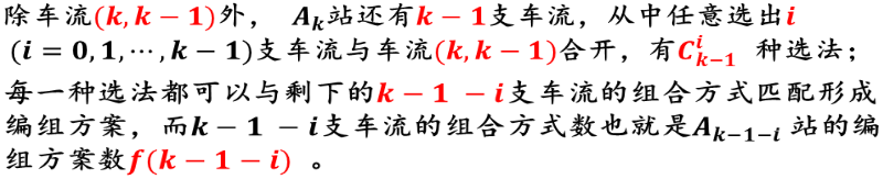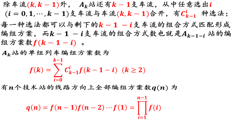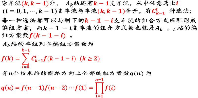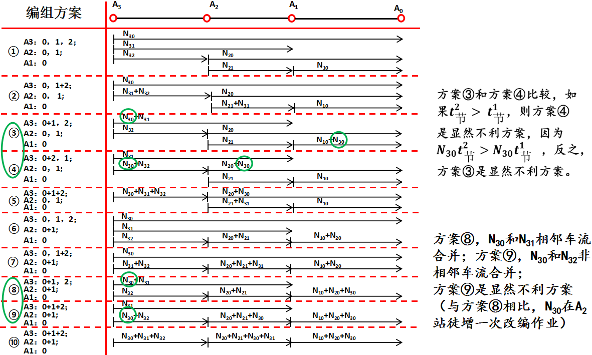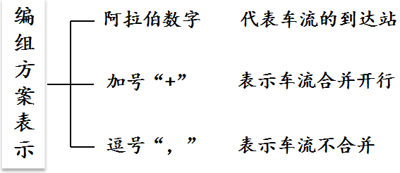 ¤如果把单支车流不与任何其它车流合并也视作一种车流组合方式的话,那么可以说,列流是由车流组合而形成的,因此,一个编组方案,实质上就是方向上所有车流的一种组合方式;