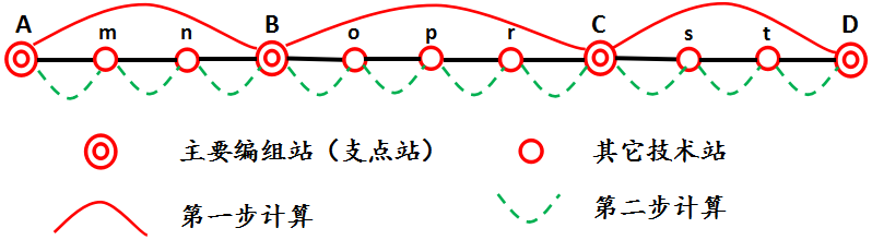 第二步,分别计算各相邻支点站之间的编组计划