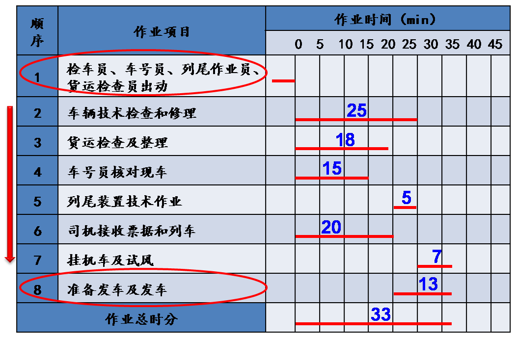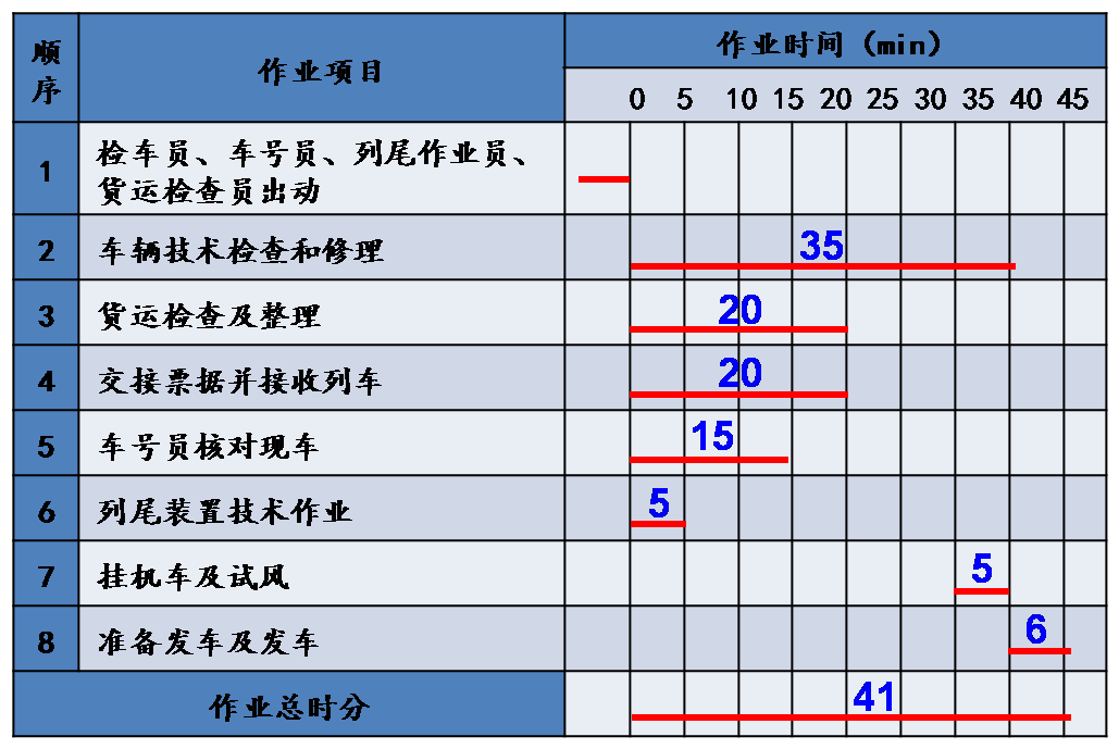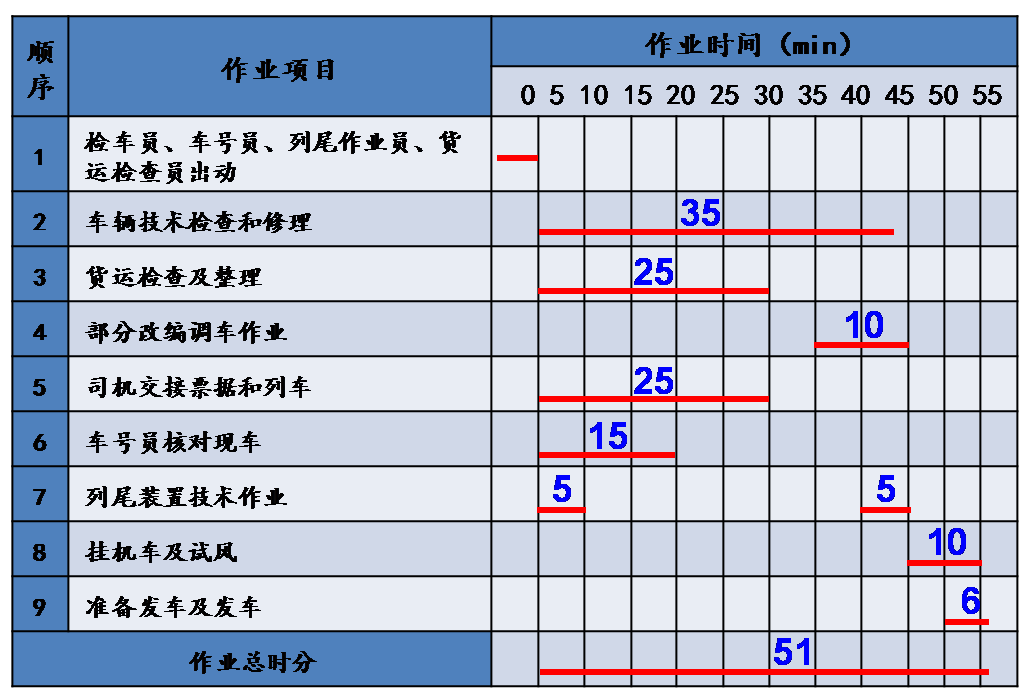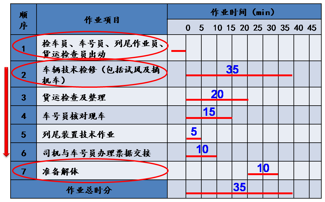 (1)根据各种列车的不同要求,车站应在查定各项作业时间标准的基础上,分别编制各种列车的技术作 业过程,以协调各部门、各工种人员的工作,缩短列车技术作业总时间。