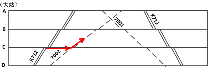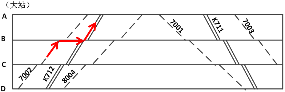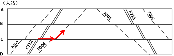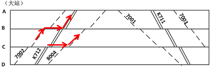 若管内旅客列车数较少,当某一方向(例如上行方向)直通列车换乘管内列车的客流占优势时,可只在直通列车的后面开行一次管内列车,为优势方向客流服务