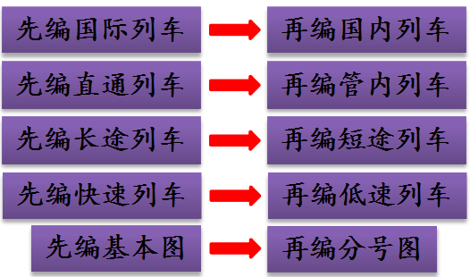 在编制列车运行图时,通常按下面的顺序进行: