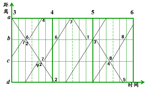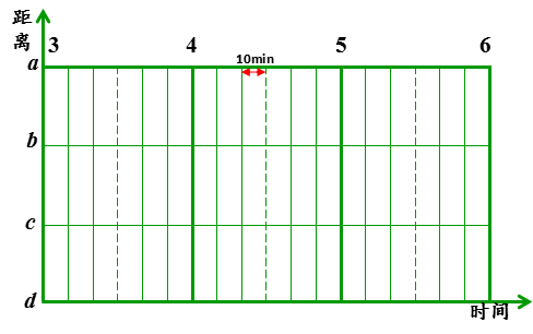 十分格运行图:横轴以10min为单位用细竖线加以划分,半小时用虚线表示,小时格用较粗的竖线表示。