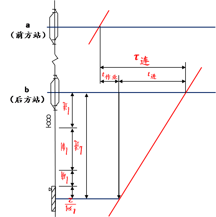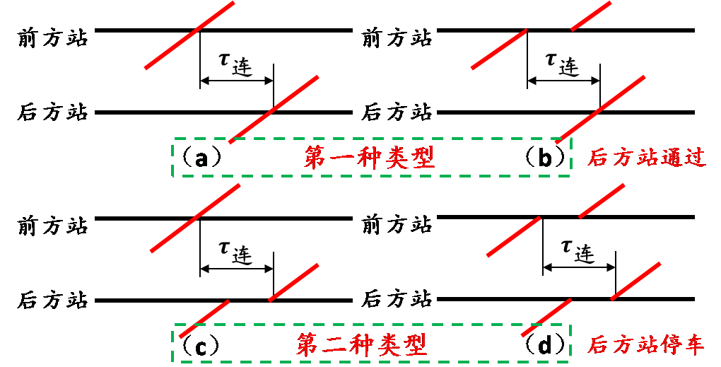 连发间隔时间,是发生在前后两个车站上,而前面的不同时到达间隔时间以及会车间隔时间都只是在同一个车站上。