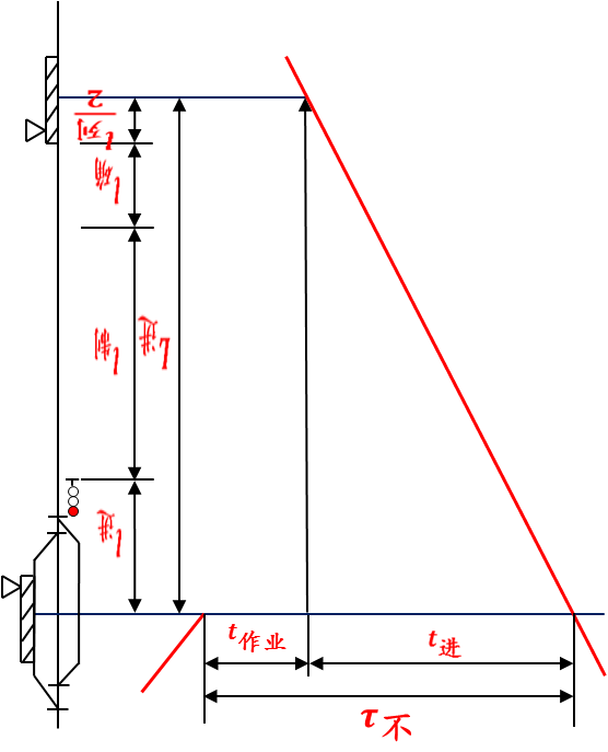 2、进站信号开放时,列车头部在进站信号机外方所处的位置,应等于一个制动距离和司机确认信号时间内所通过的距离之和。![]()