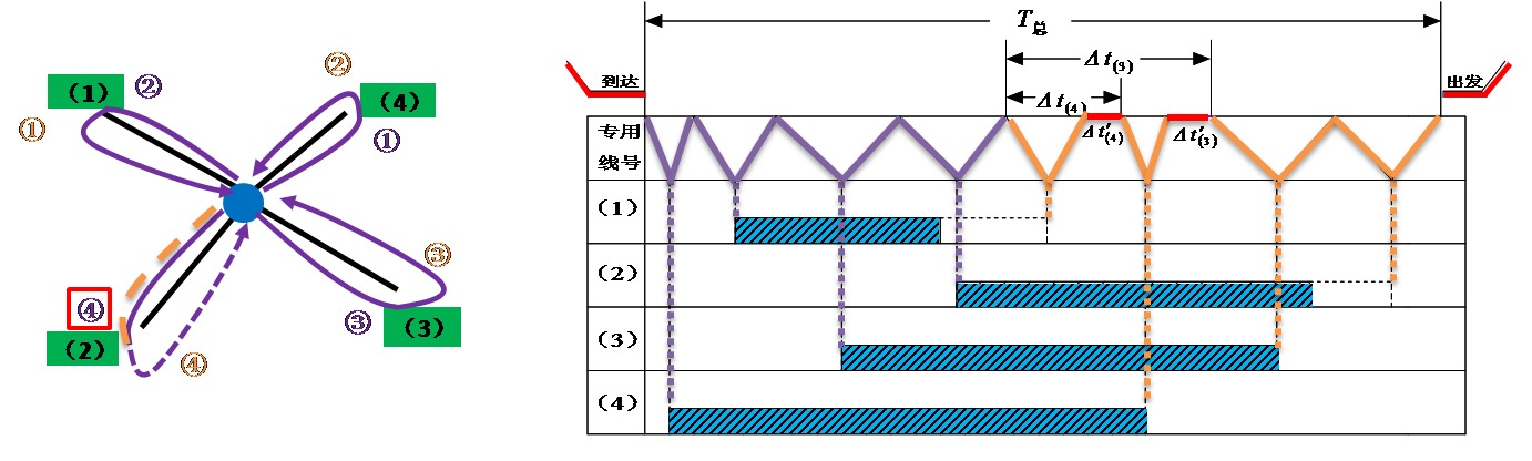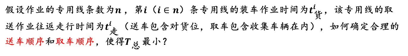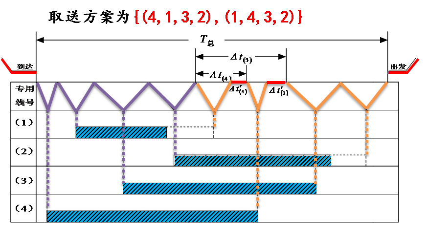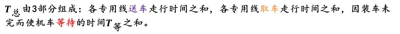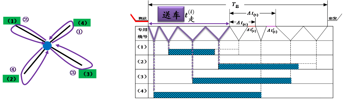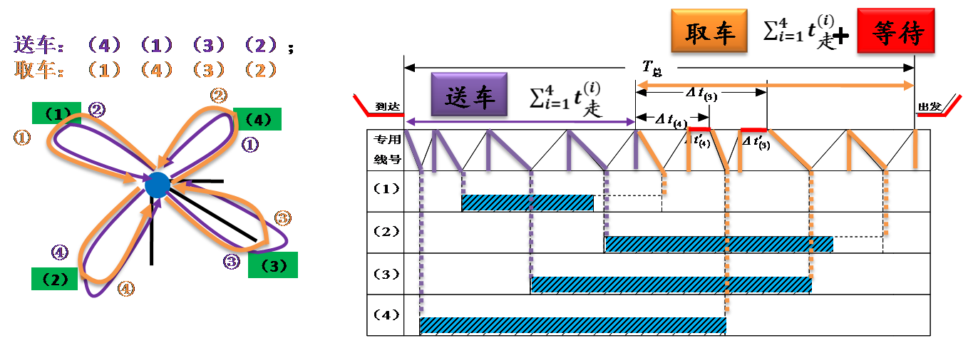 放射形专用线它的作业特点是:各线车辆的入线及取回站内的时刻是各不相同的,所以不同的送车顺序和取车顺序将会导致T总的不相等。