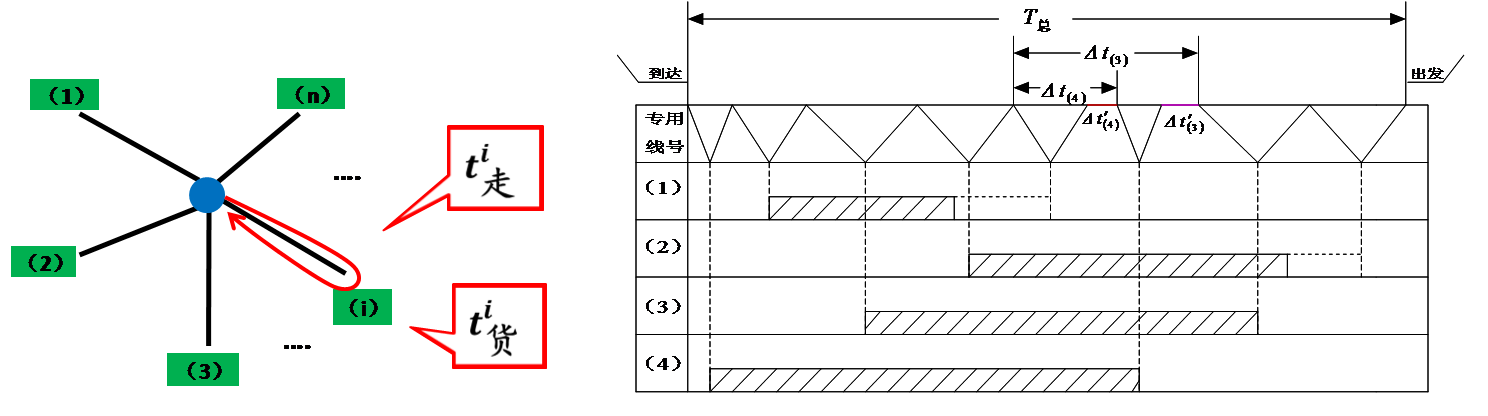 车辆在站总停留车小时的长短主要取决于从第一批车辆送车开始至全部车辆取回为止的时间,称之为技术作业总时间,记作T总。
