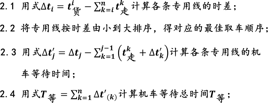 前人研究表明[1],在送车顺序已经确定的前提下,按照时差由大到小的顺序取车,将使得机车总的等待时间T总取得最小值。这便是确定最佳车顺序的方法—时间顺序法