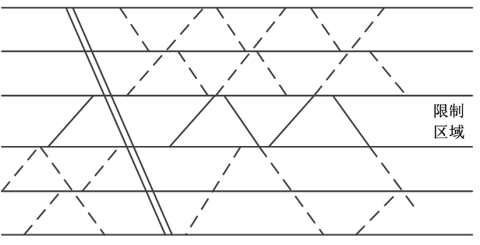 当在运行图上铺画的列车对数达到区间通过能力利用率的80%以上时,为了有效地使用区间通过能力,该区段应从限制区间开始铺画货物列车运行线。