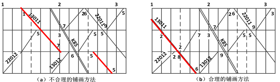 在单双线区段,可从最困难的单线区间开始铺画列车运行线,并尽可能使列车的交会在双线区间内进行。