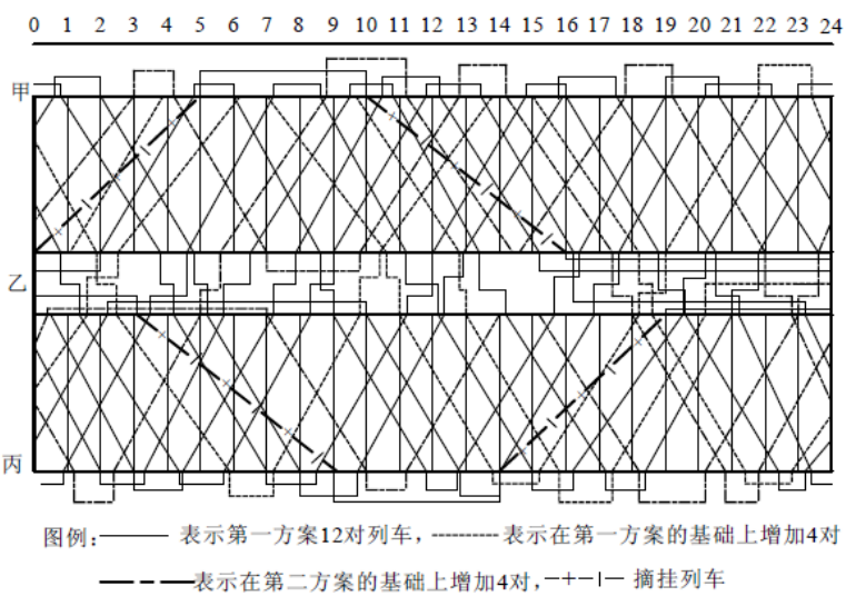 缺点:由于每个分号列车运行图中的运行线是各自独立的,因此当更换分号列车运行图时,容易发生困难。