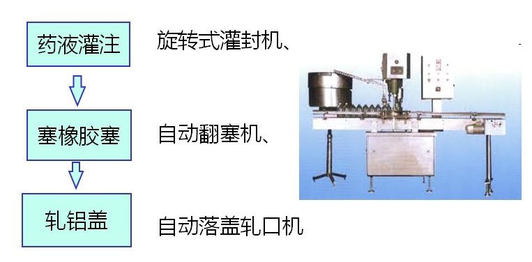 大容量注射剂生产为玻璃瓶、塑料瓶、塑料袋等三种工艺流程。