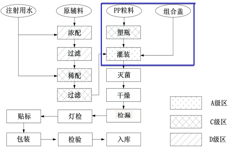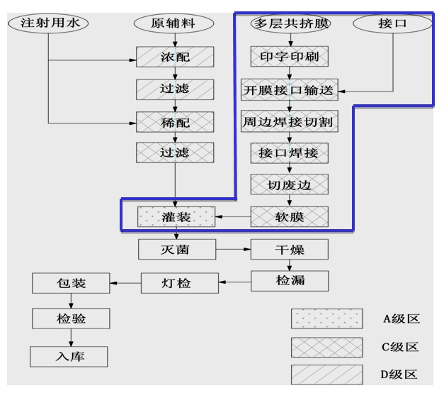 除了蓝色框选的部分,其他工艺于其他两种输液剂的生产工艺类似。