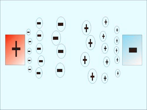 2.电学性质 溶胶剂由于双电层结构而荷电,可以荷正电,也可以荷负电。在电场的作用下胶粒或分散介质产生移动,在移动过程中产生电位差,这种现象称为界面动电现象。溶胶剂的电泳现象(即带电质点在电场中的移动)就是界面动电现象所致。动电电位越高电泳速度就越快。