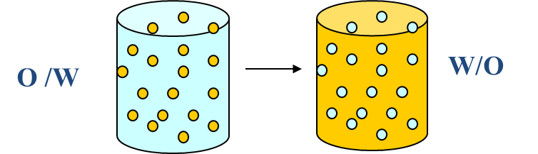 根据乳剂中分散介质和分散相的位置不同(如水有时是分散相,有时是分散介质),可将乳剂分为O/W型和W/O型两种。除此之外还有更复杂的O/W/O型和W/O/W型。“油”为分散相,分散在水中,称为水包油(O/W)型乳剂;水为分散相,分散在“油”中,称为油包水(W/O)型乳剂。