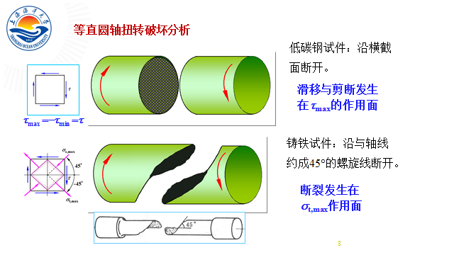 3、结合我们学习的应力状态分析,研究两种材料的破坏机理。