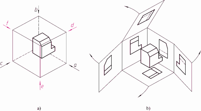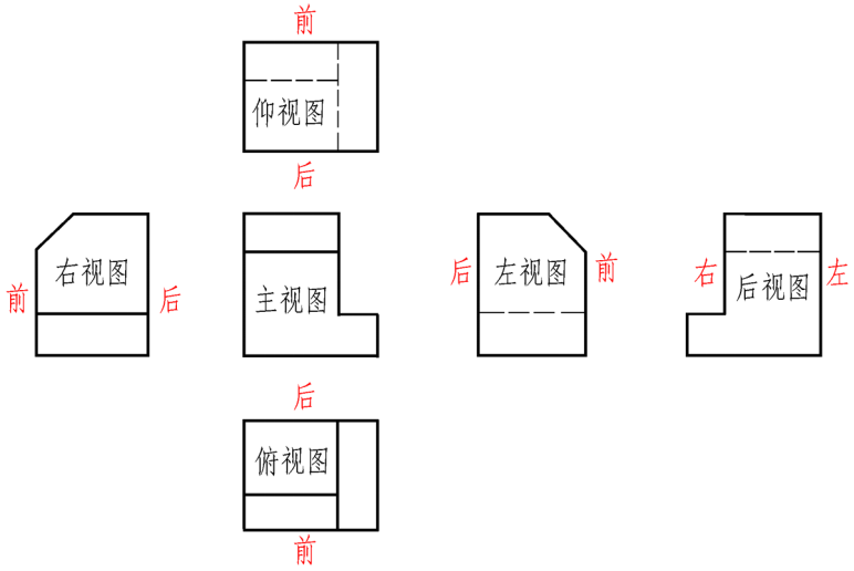 <一>、基本视图 ——将机件向基本投影面投射所得的视图。