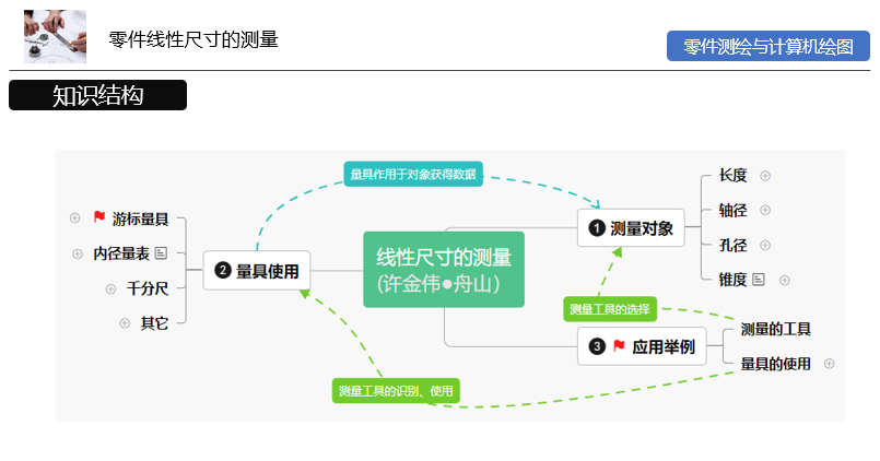2.初步学会使用思维导图构建线性尺寸测量的知识体系