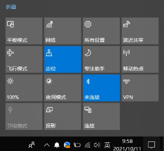 单击任务栏右下角“通知中心”按钮,打开“操作中心”窗格,如图3.6所示,单击“平板模式”按钮,桌面切换成平板模式。