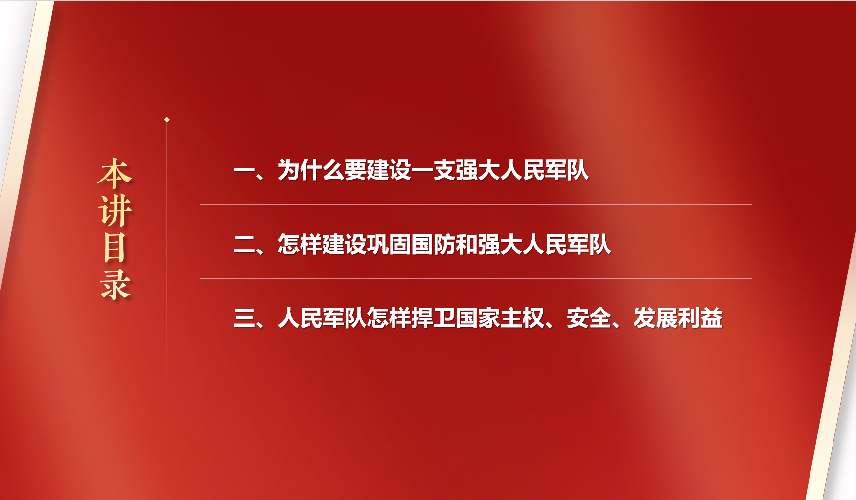 第一目主要阐述习近强军思想回答的时代课题,以及习近平强军思想的历史地位。