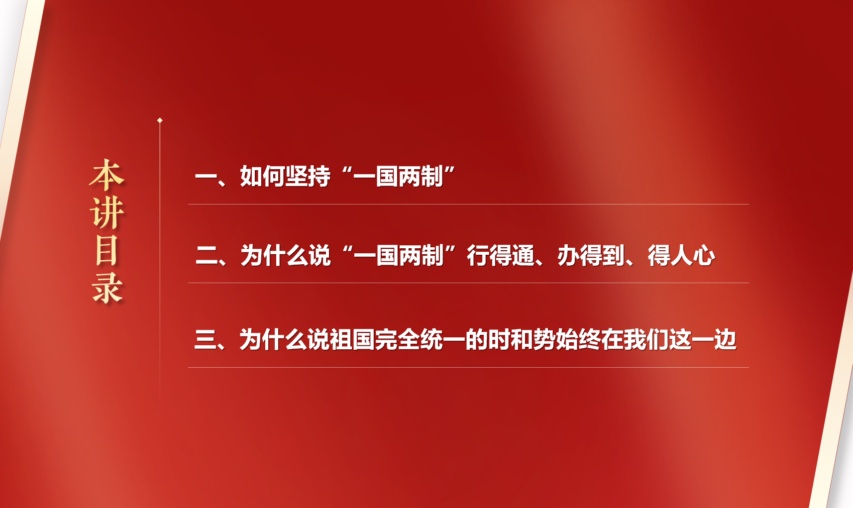 第一目“全面准确贯彻‘一国两制’方针”主要阐述全面准确贯彻“一国两制”方针的几点要求;
