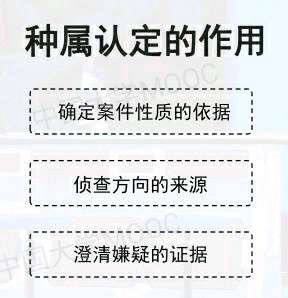 种类鉴别是指具有专门知识的人或了解客体特征的人,以物证检验所获取的科学事实为依据。对物证和留下物证的人或物的种类归属进行鉴别和判断的过程,又称种属认定,种属认定对客观事物进行科学分类具有重要意义,因为人在认识客观世界时,如仅仅停留在单一的个别事物的水平。没有种类的概念,就认识不到个别事物之间的联系,把握不住事物运动的一般规律及其本质特征,因而就没有科学的发展,这就是从个别到一般、从个体到种类。“种的概念”还包含从—般到个别、从种类到个体,即从实际情况出发,根据一般规律、一般特点,去认识和处理个别的具体事物。刑事技术的种类认定是以通过研究获得的对各种客体的本质特征或一般规律的认识为基础,与具体案件中的物证或其所反映的客体特征相比较,去认定该客体的种类归属,进而为侦查提供线索。