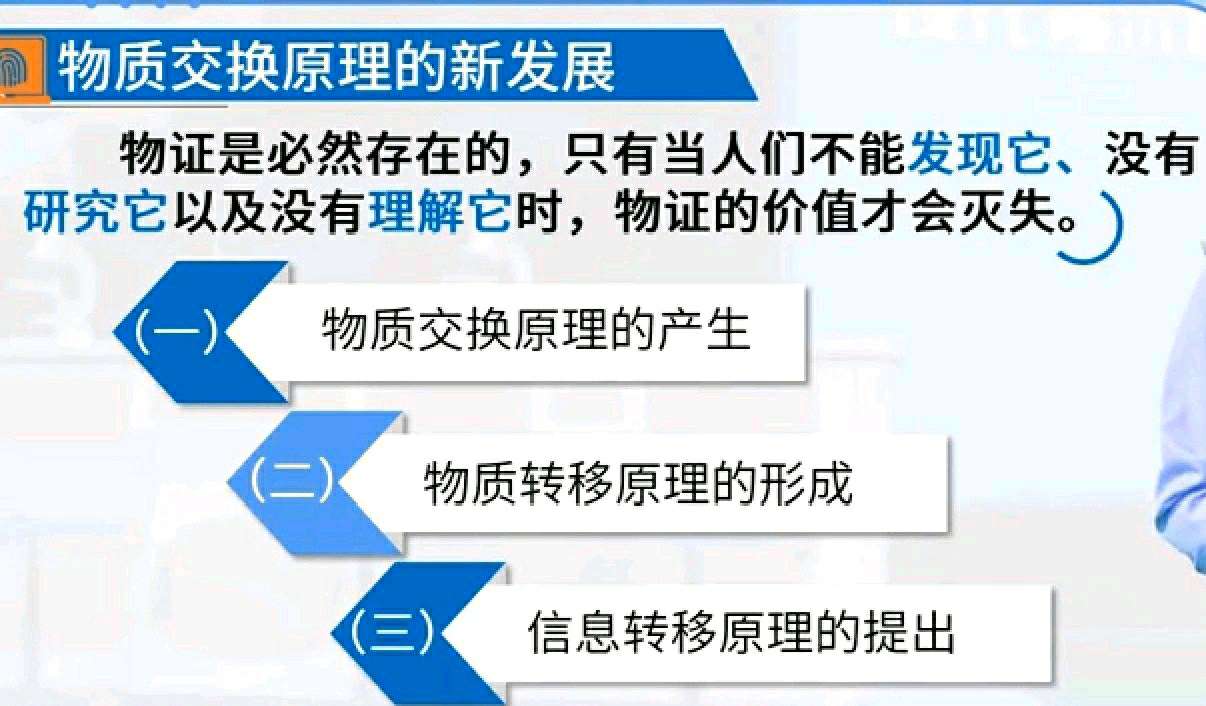 物质交换和转移,这两个过程都是哲学上物质定义的能动反映,即物质的运动性、客观必然性和实在性,以及能为人所认识的特性。虽然物质经过转移相交换,但仍然能客观、真实地反映其本质。因而为刑事技术的检验鉴定提供了充分必要的理论基础和物质条件。物质交换和转移原理的意义在于将使任何物质都可成为物证,并且犯罪必然会产生物证。
