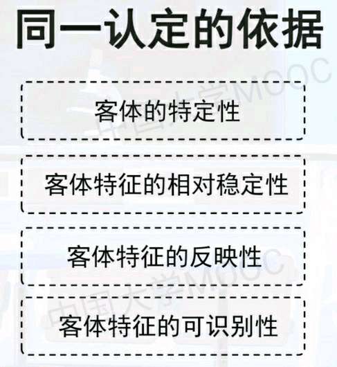 综上所述,客体特征的特定性,为区分不同的个体提供了依据;而客体特征的稳定性,则为认识不同时空环境下的同一客体提供了条件;客体特征的反映性,为认识客体的特性提供了物质基础,使同一认定成为可能;客体特征的可认识性,使同一认定通过人类的认识活动才得以实现。