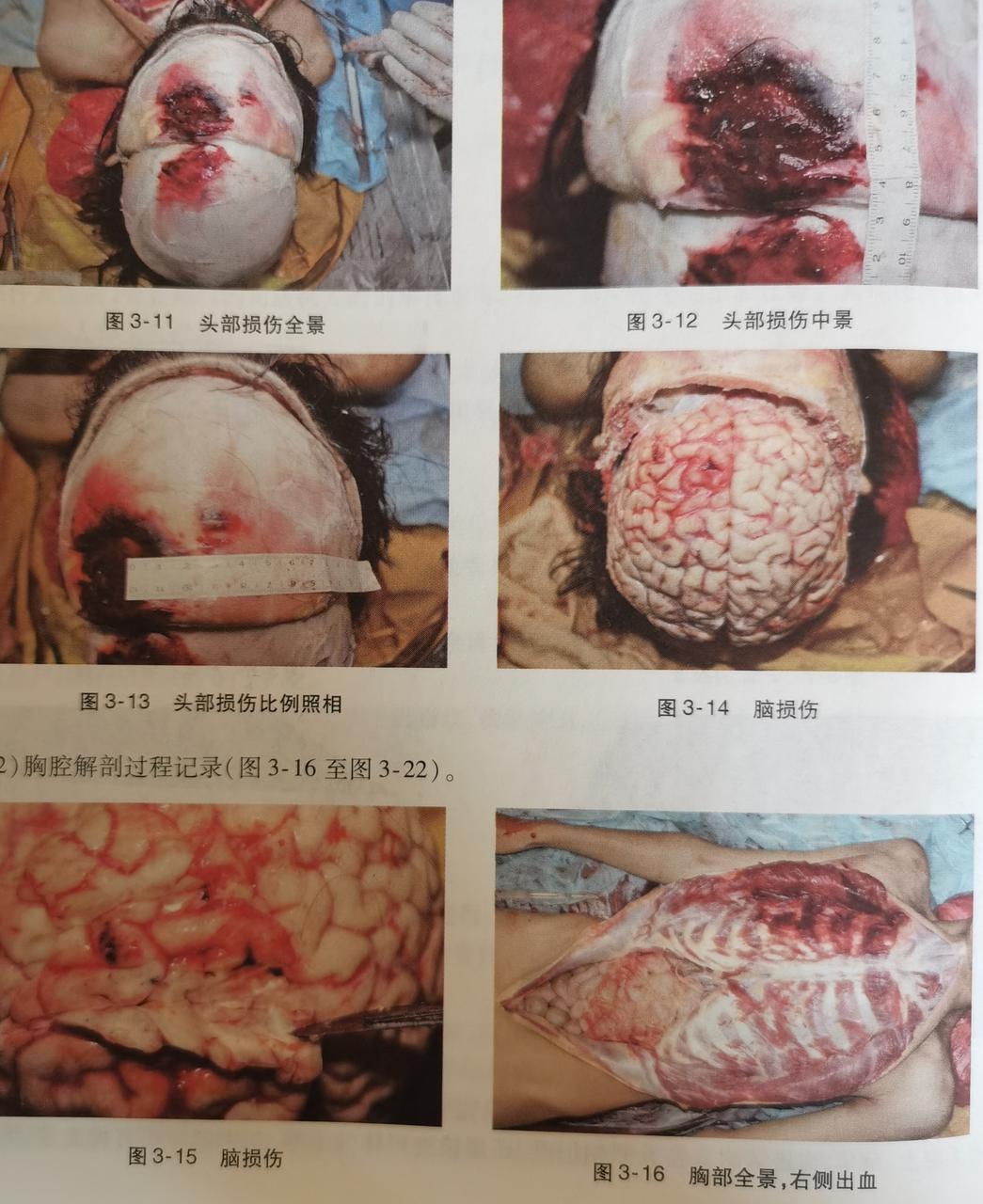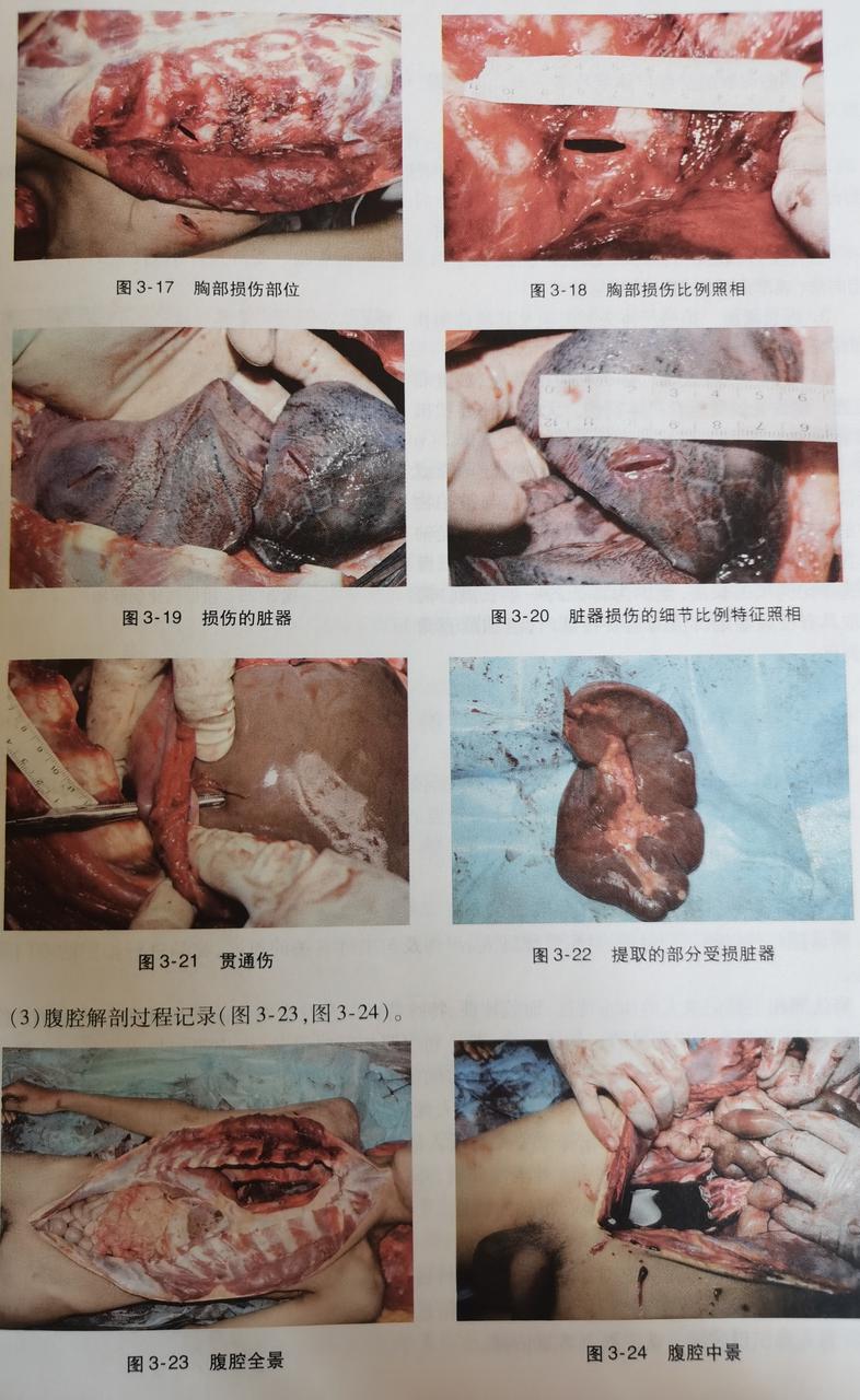 6、照相记录颅腔、胸腔、腹腔解剖过程及发现的异常,每部分内容在拍照时按照全景、中景、近景来进行。全景照片表现解剖的部位,中景照片表现发现异常的部位,近景照片表现异常细节。对提取脏器要单独记录。